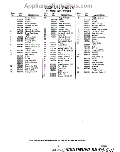 Parts for EET173PKWR0