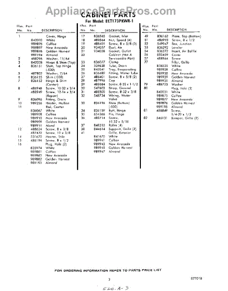 Parts for Whirlpool EET173PKWR1: 03 - Section Parts
