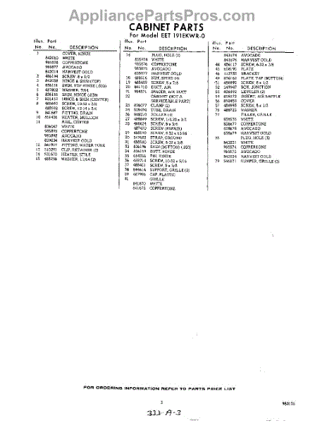 Parts for Whirlpool EET191EKWR0: 03 - Section Parts
