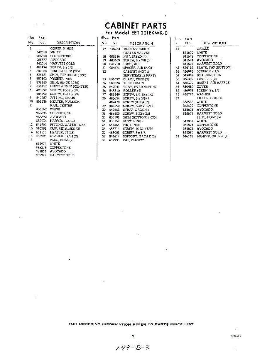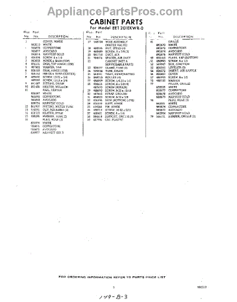 Parts for Whirlpool EET201EKWR0: 03 - Section Parts