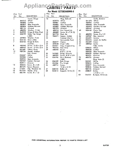 Parts for Whirlpool EET202MMWR0: 03 - Section Parts