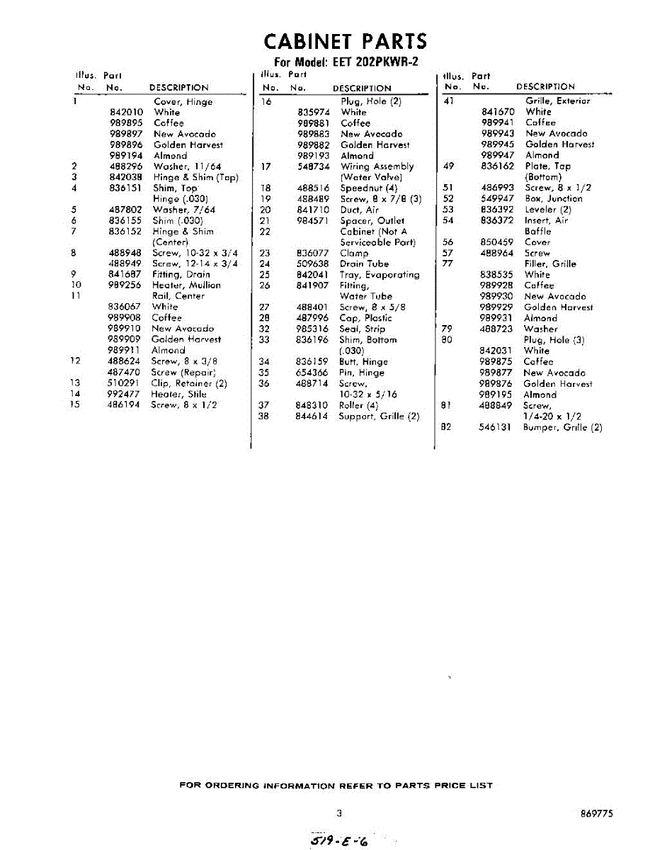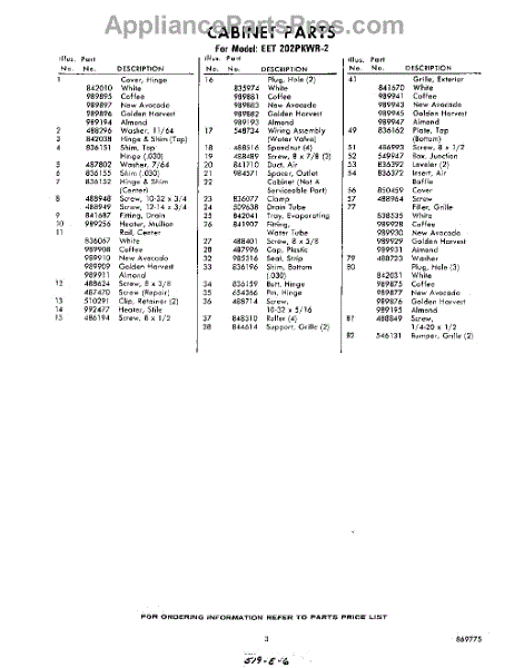 Parts for Whirlpool EET202PKWR2: 03 - Section Parts