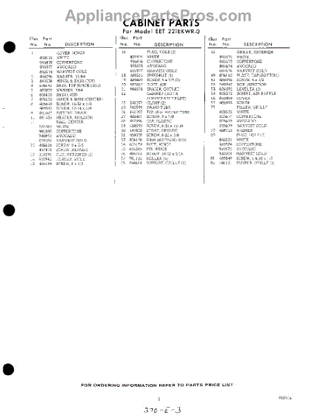 Parts for Whirlpool EET221EKWR0: 03 - Section Parts