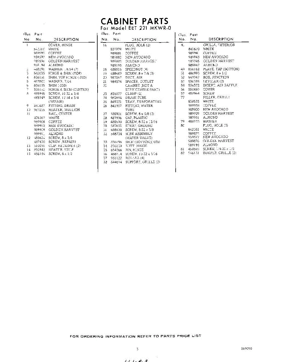 Parts for Whirlpool EET221MKWR0: 03 - Section Parts