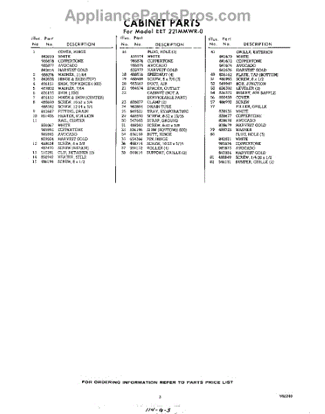 Parts for Whirlpool EET221MMWR0: 03 - Section Parts
