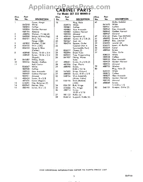 Parts for Whirlpool EET222MKWR0: 03 - Section Parts