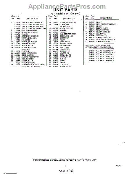 Parts for EEV120EW0