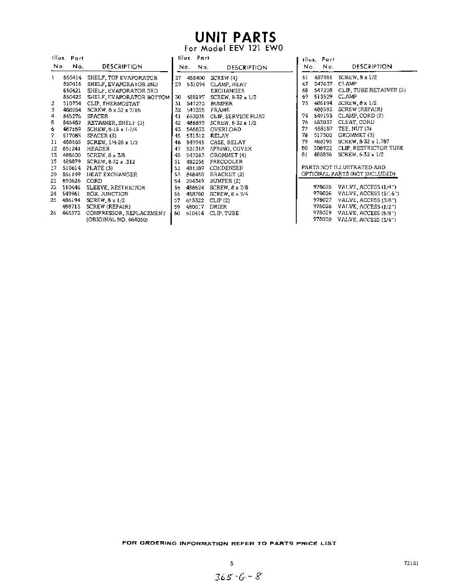 Parts for EEV121EW0