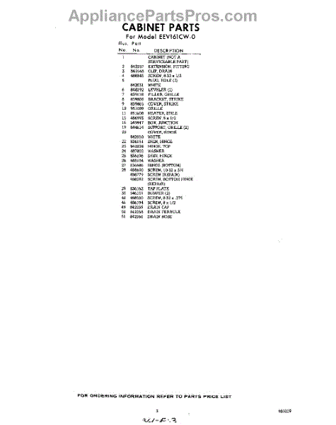 Parts for Whirlpool EEV161CW0: 03 - Section Parts