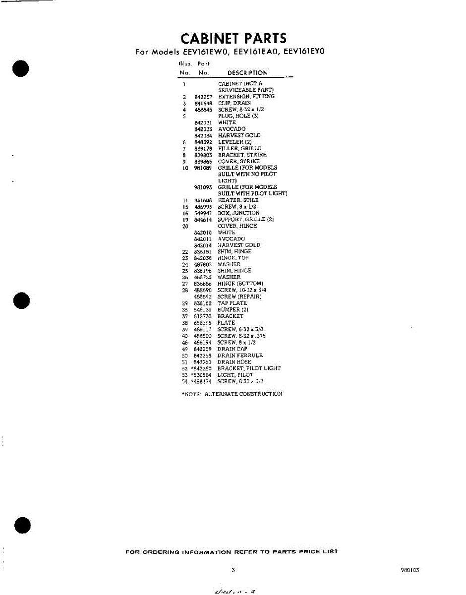 Parts for Whirlpool EEV161EA0: 03 - Section Parts