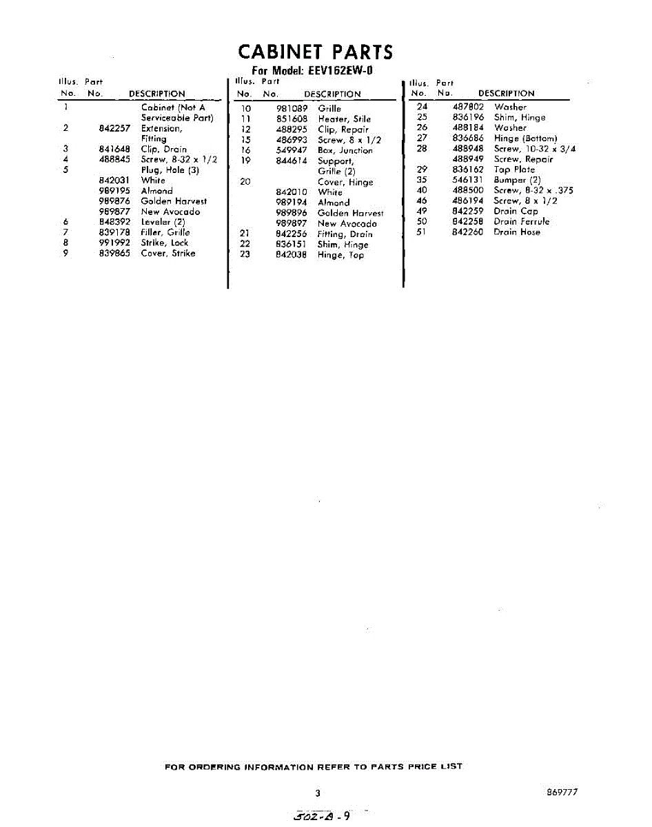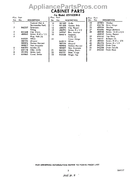 Parts for Whirlpool EEV162EW0: 03 - Section Parts