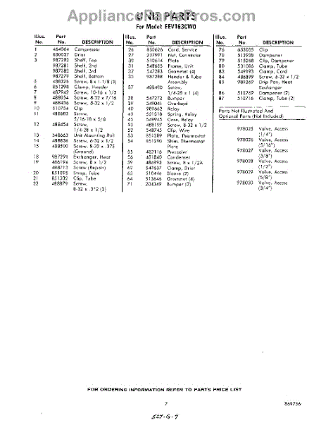 Parts for Whirlpool EEV163CW0: 07 - Section Parts