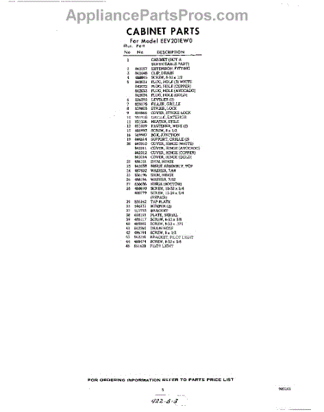 Parts for Whirlpool EEV201EW0: 03 - Section Parts
