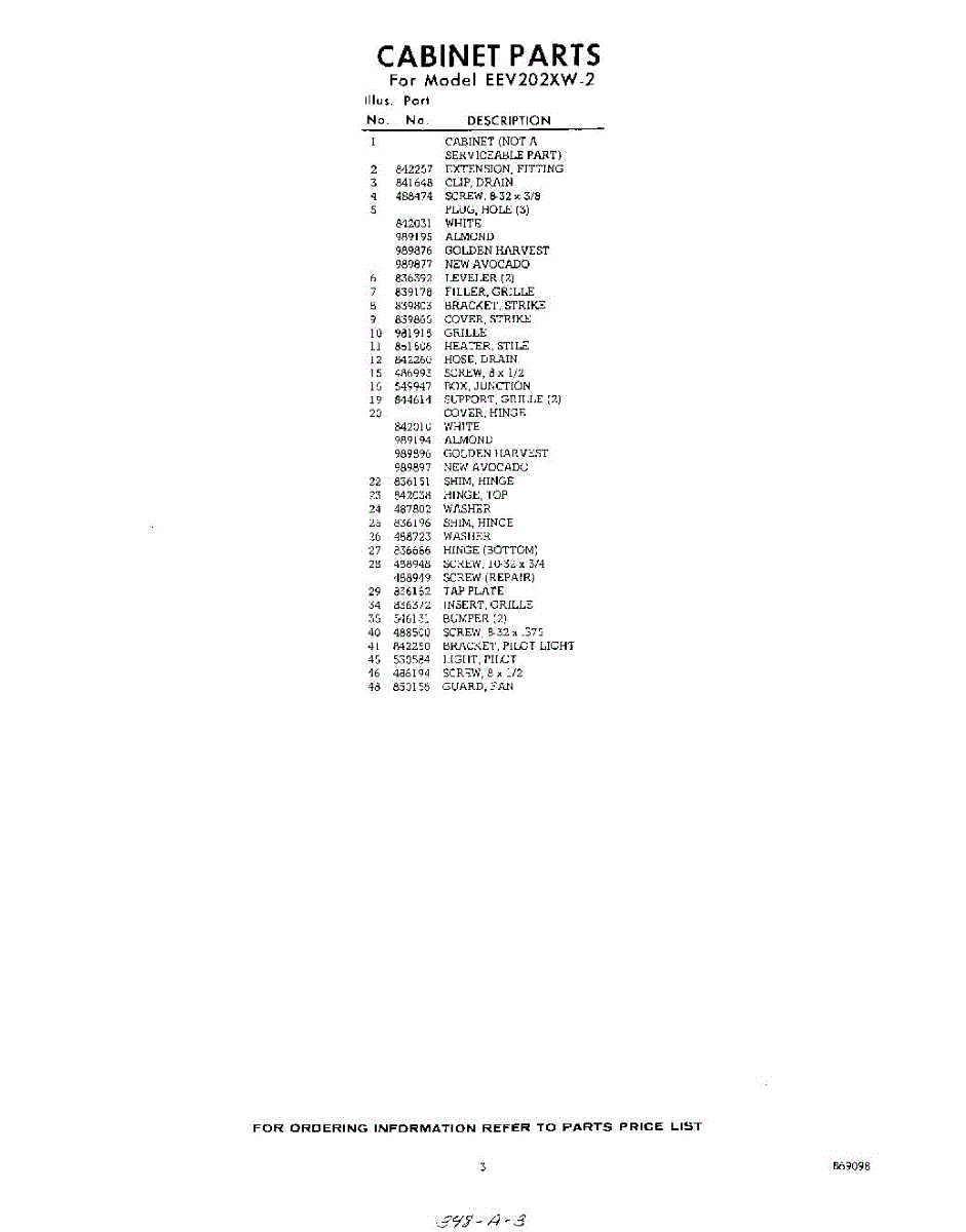 Parts for Whirlpool EEV202XWR2: 03 - Section Parts