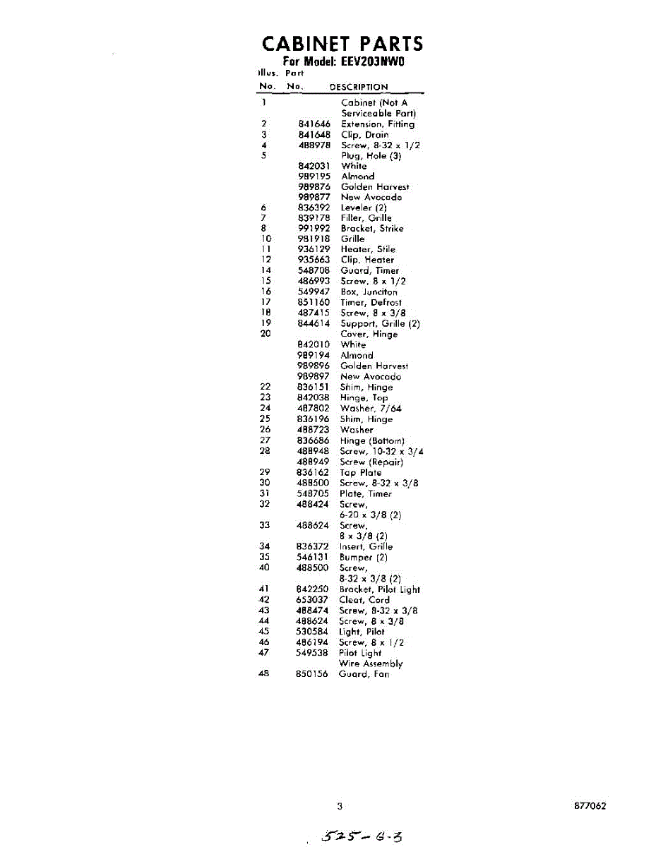 Parts for Whirlpool EEV203NW0: 03 - Section Parts