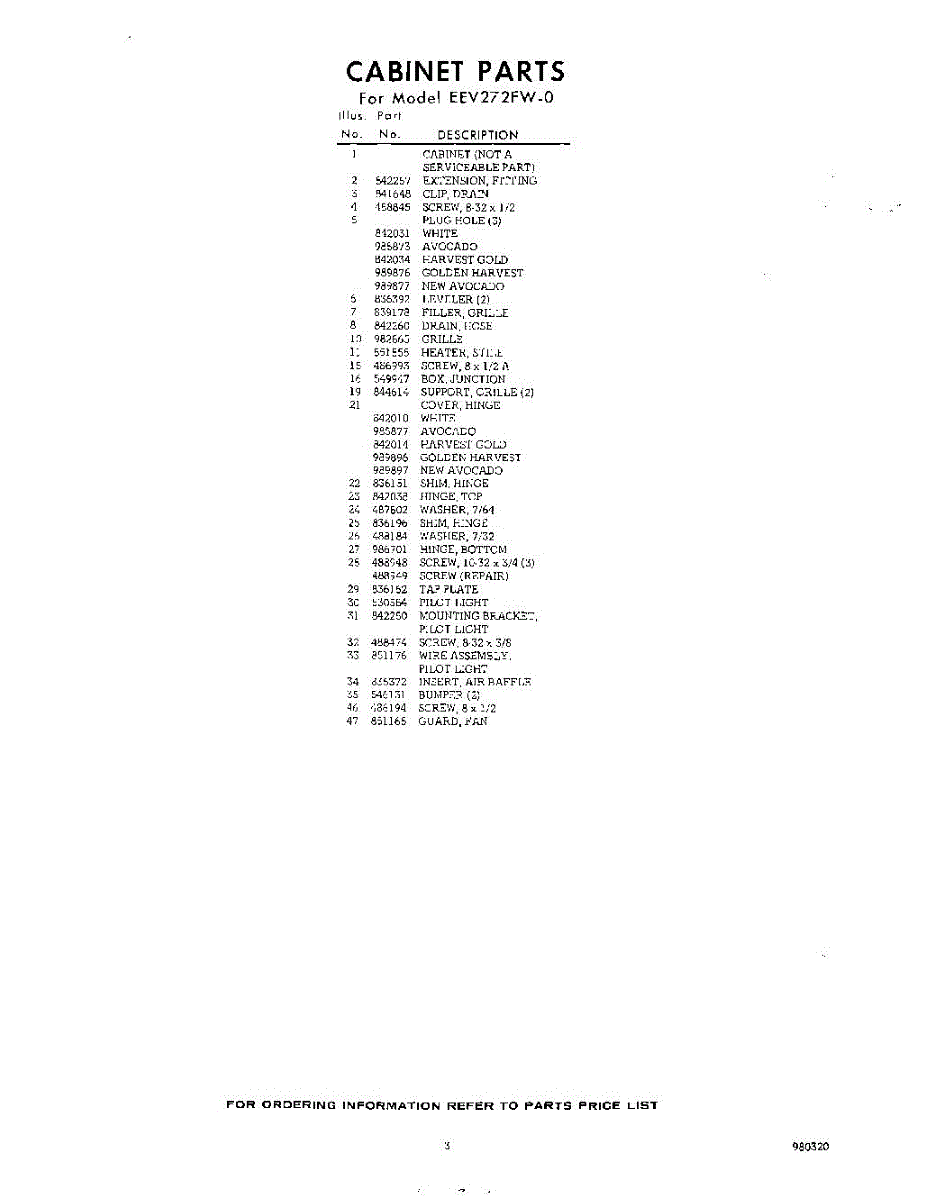 Parts for Whirlpool EEV272FW0: 03 - Section Parts