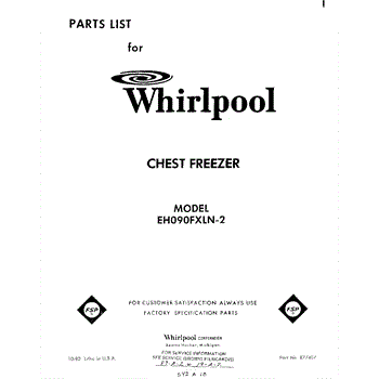 Parts for Whirlpool EH090FXLN2: 01 - Section Parts