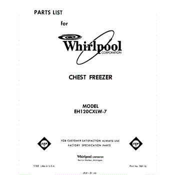 Parts for Whirlpool EH120CXLW7: 01 - Section Parts