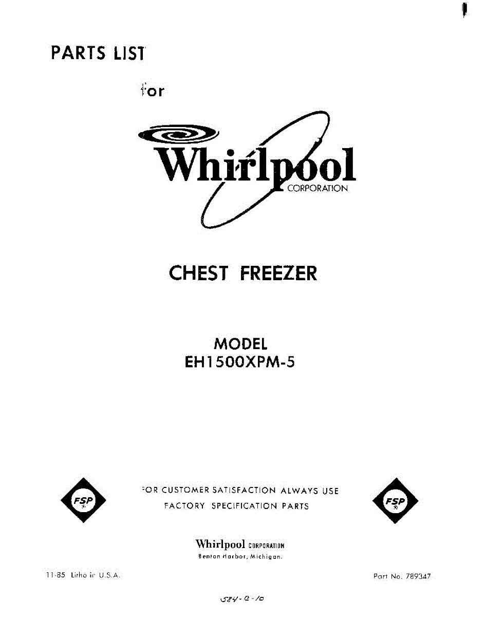 Parts for Whirlpool EH1500XPM5: 01 - Section Parts