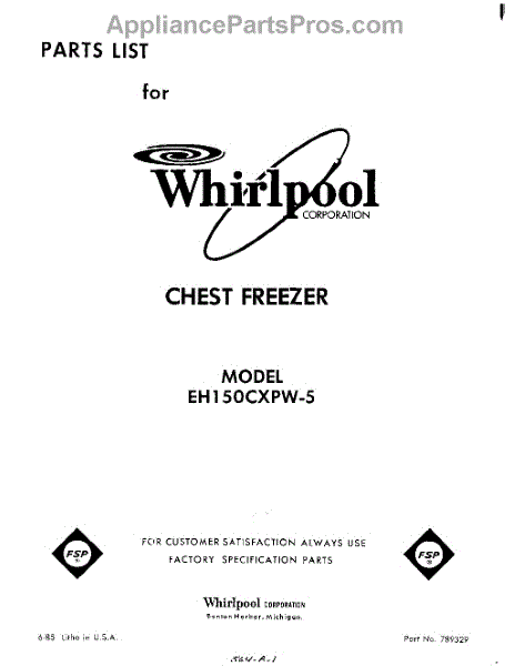 Parts for Whirlpool EH150CXPW5: 01 - Section Parts