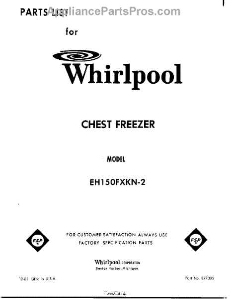 Parts for Whirlpool EH150FXKN2: 01 - Section Parts