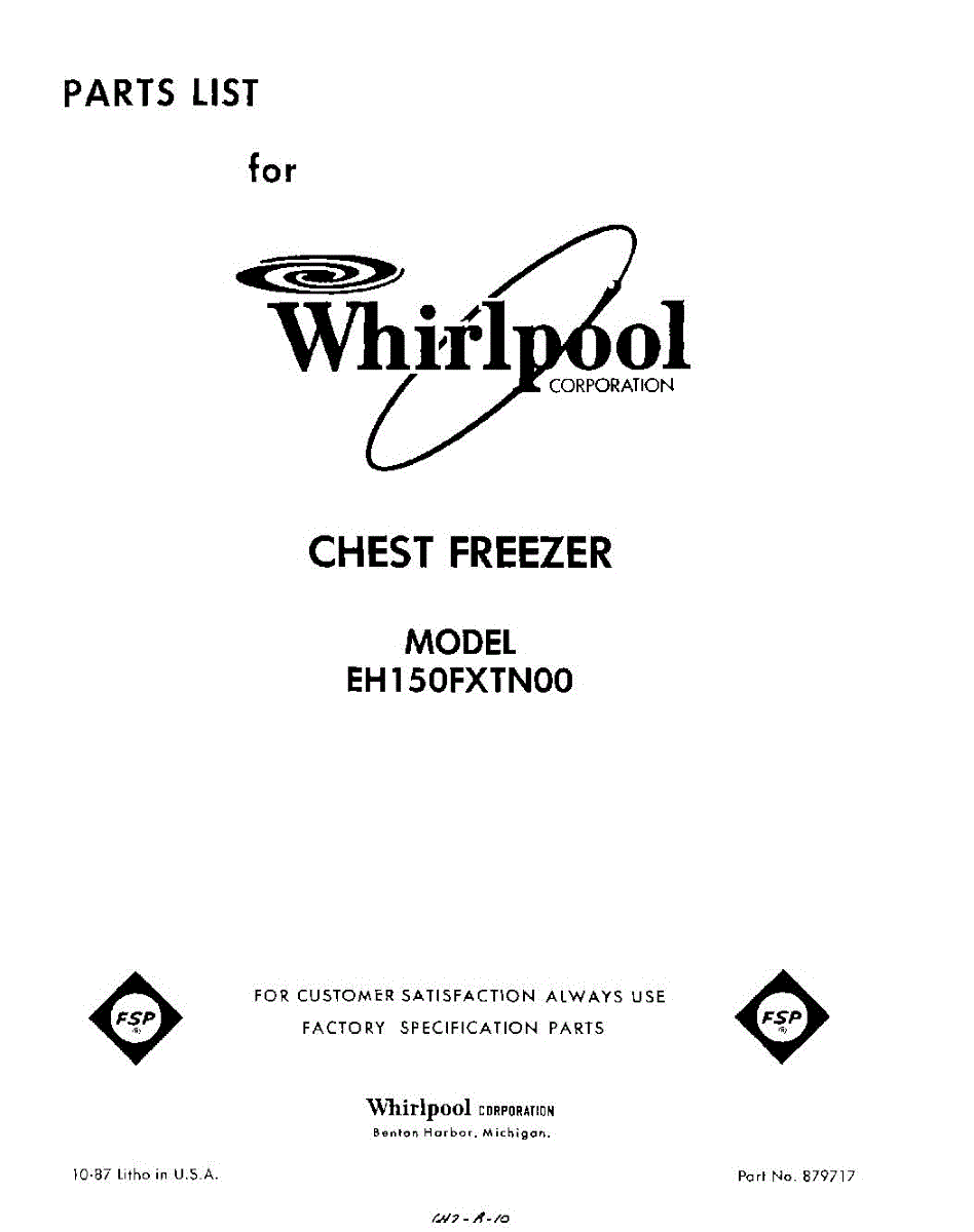 Parts for Whirlpool EH150FXTN00: 01 - Section Parts