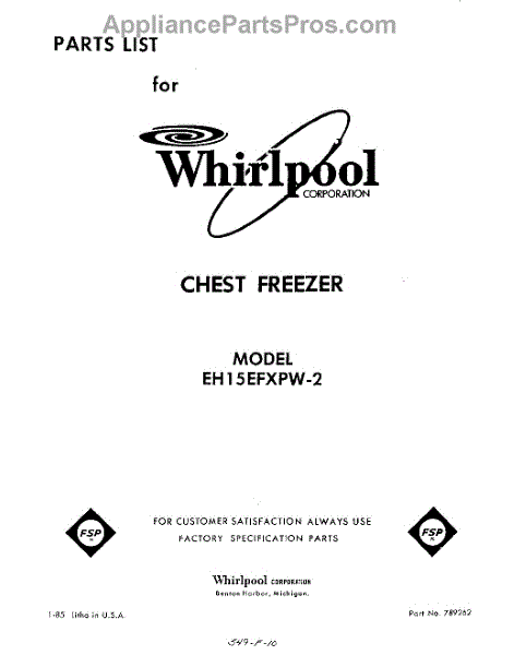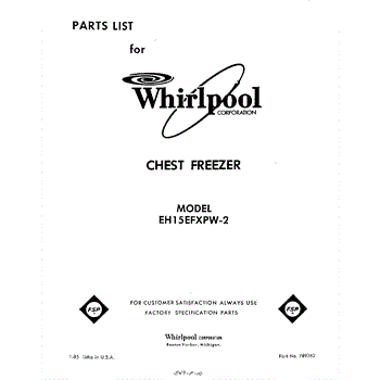 Parts for Whirlpool EH15EFXPW2: 01 - Section Parts