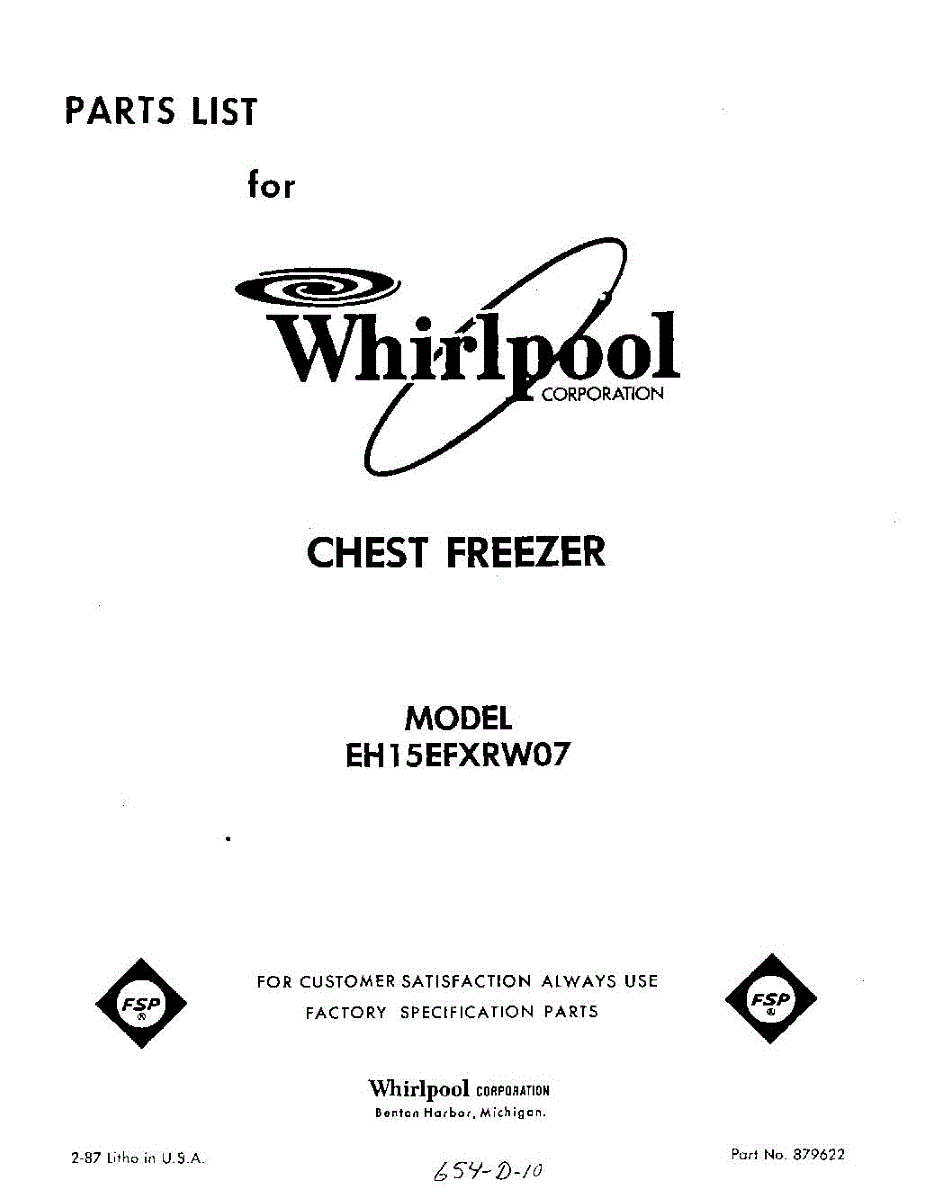 Parts for Whirlpool EH15EFXRW07: 01 - Section Parts