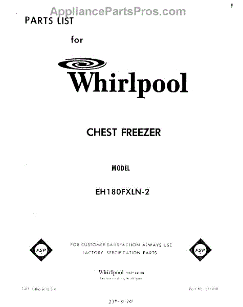 Parts for Whirlpool EH180FXLN2: 01 - Section Parts