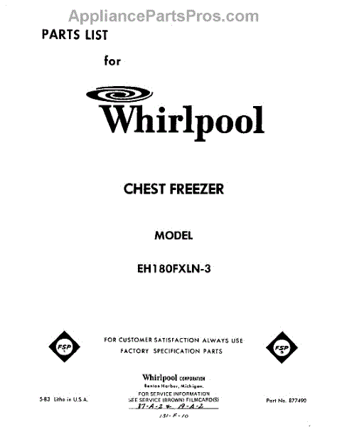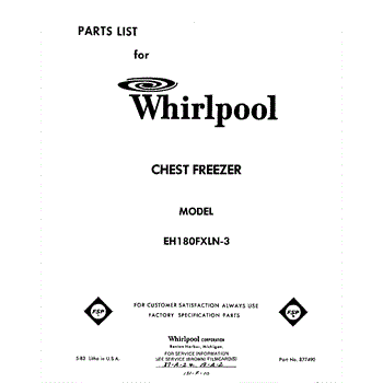 Parts for Whirlpool EH180FXLN3: 01 - Section Parts