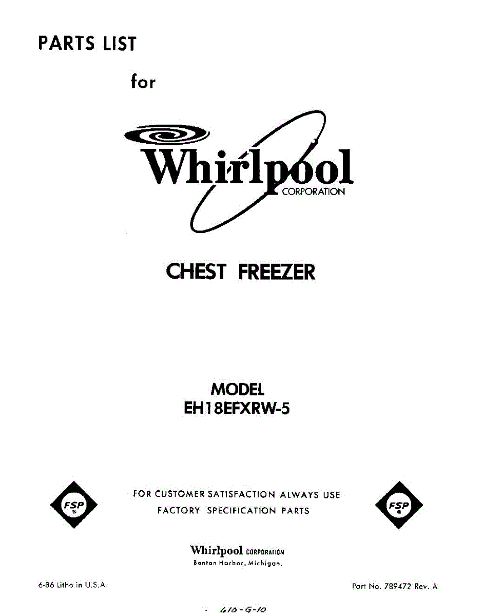 Parts for Whirlpool EH18EFXRW5: 01 - Section Parts