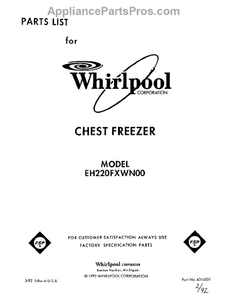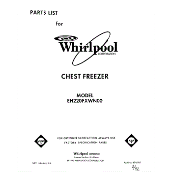 Parts for Whirlpool EH220FXWN00: 01 - Section Parts