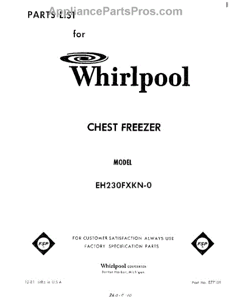 Parts for Whirlpool EH230FXKN0: 01 - Section Parts