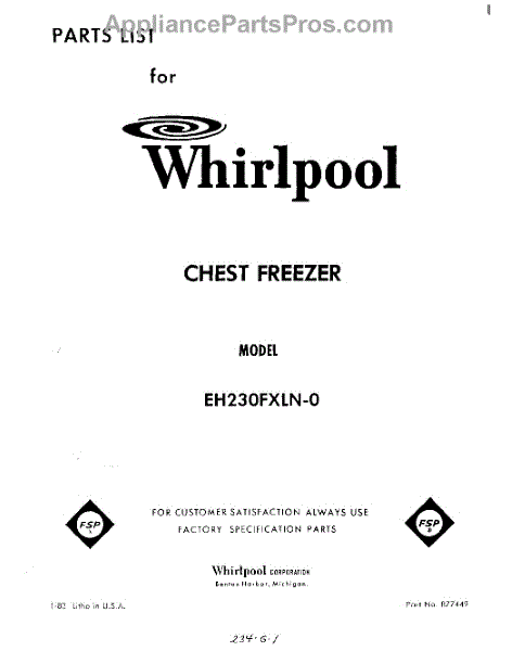Parts for Whirlpool EH230FXLN0: 01 - Section Parts
