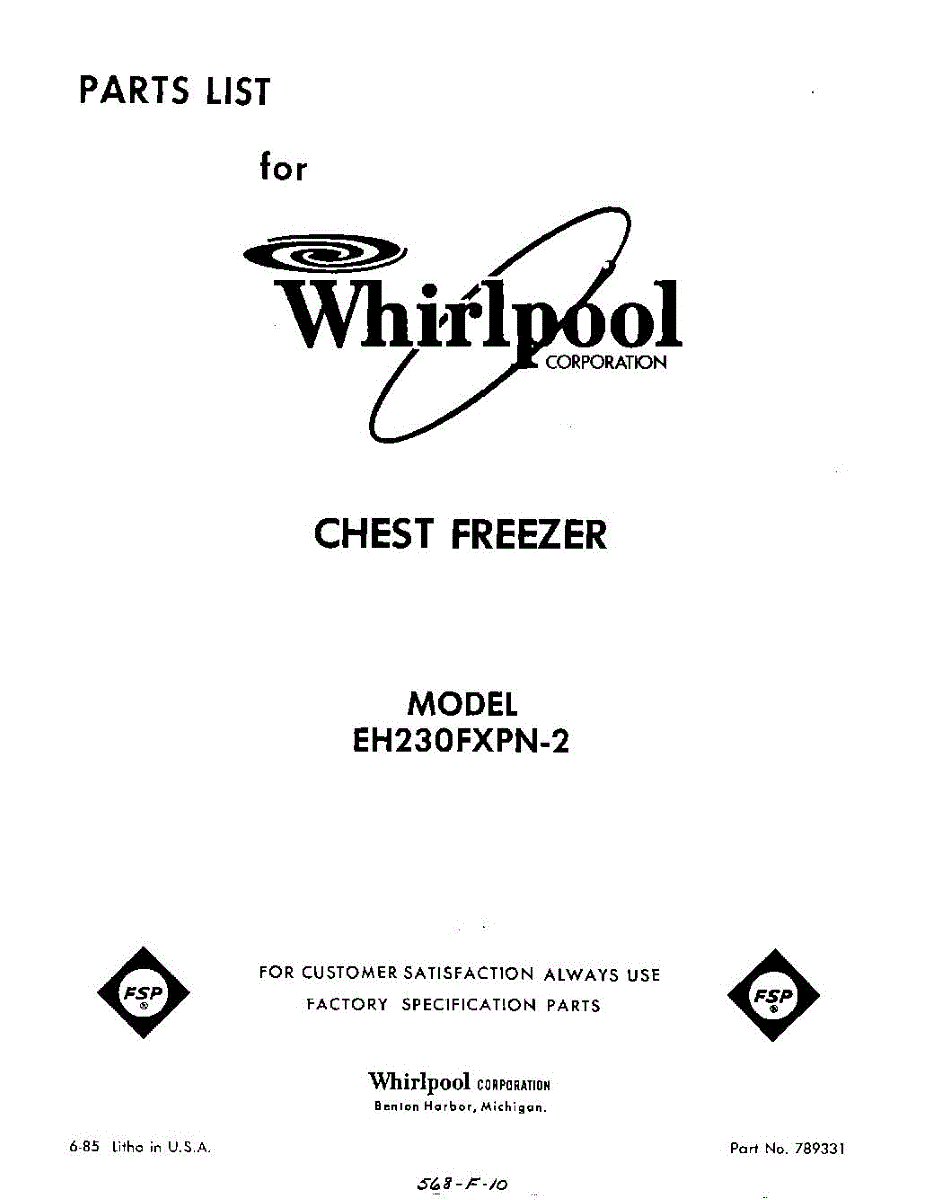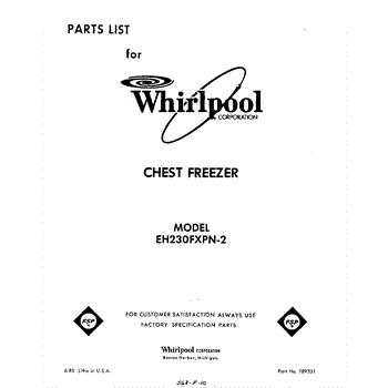 Parts for Whirlpool EH230FXPN2: 01 - Section Parts