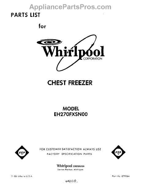 Parts for Whirlpool EH270FXSN00: 01 - Section Parts