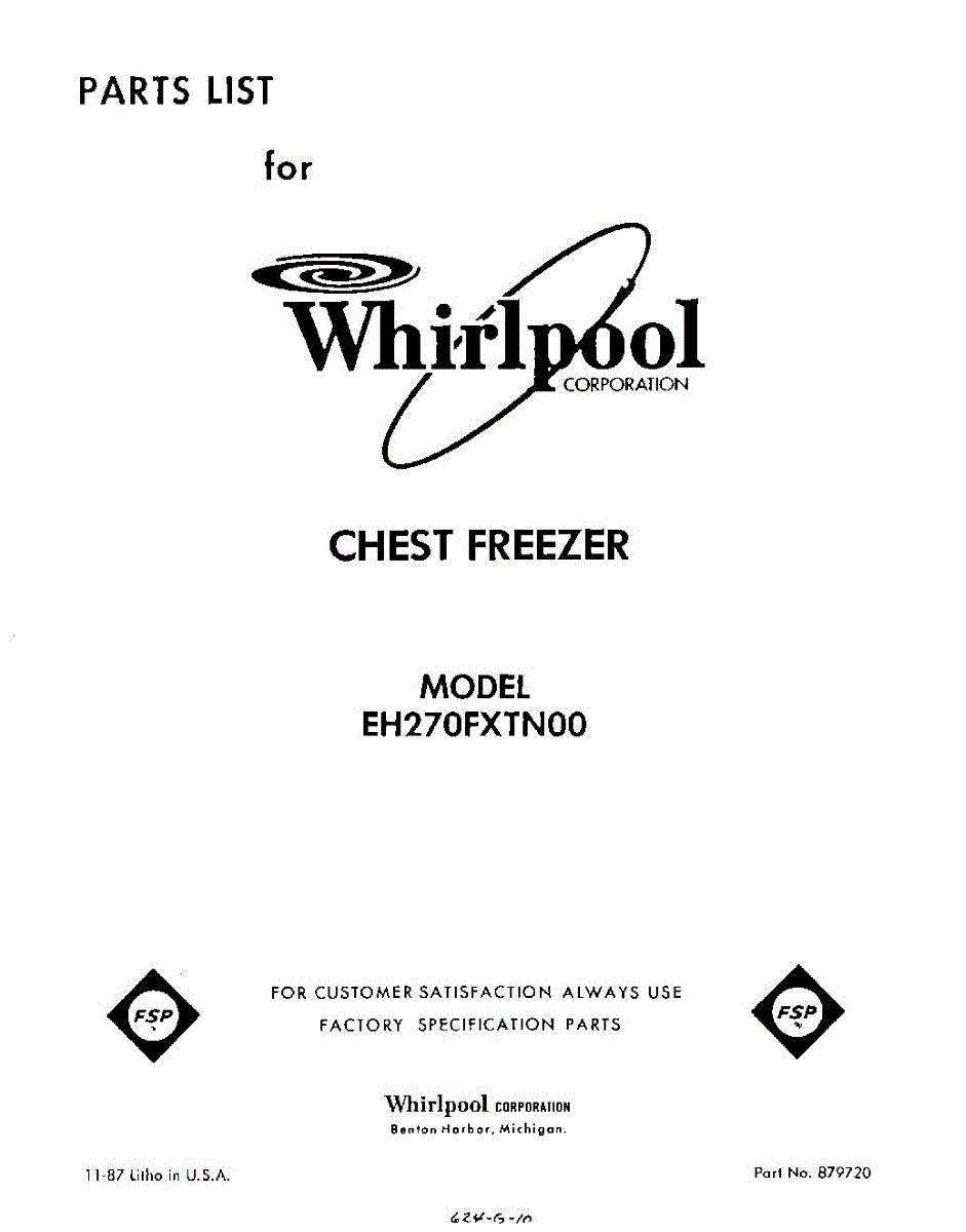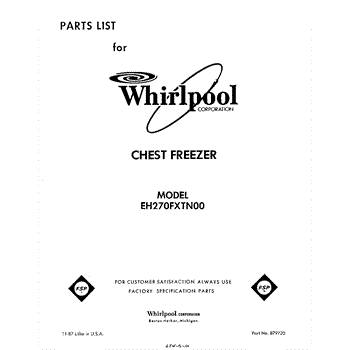 Parts for Whirlpool EH270FXTN00: 01 - Section Parts