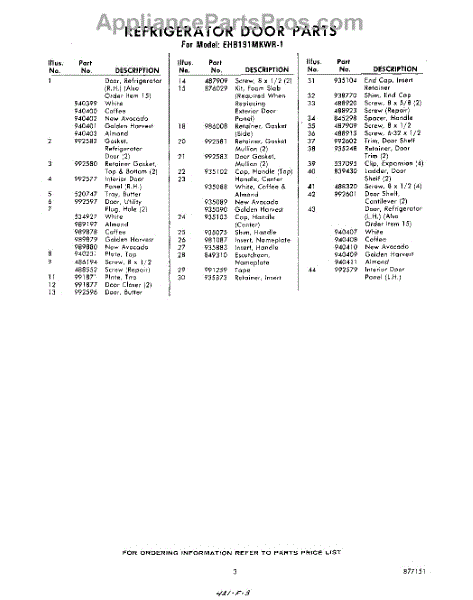 Parts for Whirlpool EHB191MKWR1: 03 - Section Parts