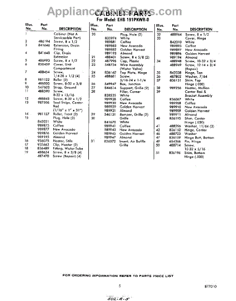 Parts for EHB191PKWR0