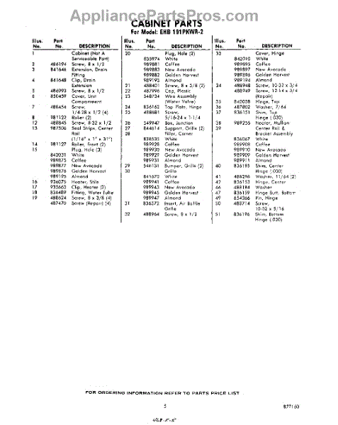 Parts for EHB191PKWR2