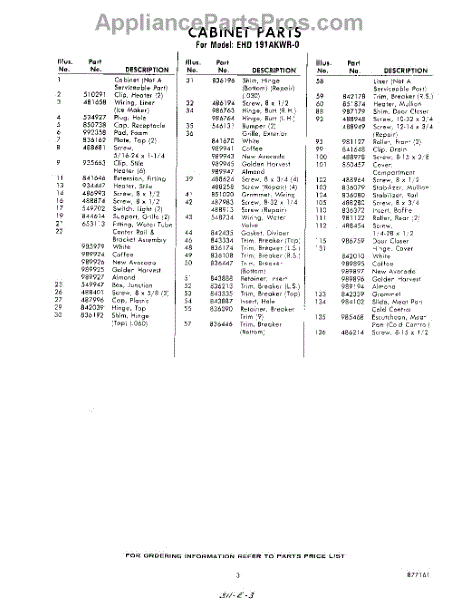 Parts for Whirlpool EHD191AKWR00: 03 - Section Parts