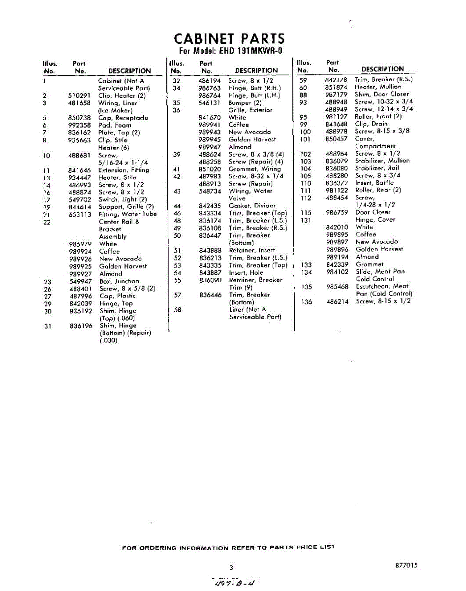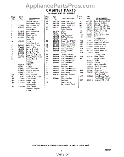 Parts for Whirlpool EHD191MKWR0: 03 - Section Parts