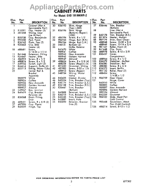 Parts for Whirlpool EHD191MKWR2: 03 - Section Parts