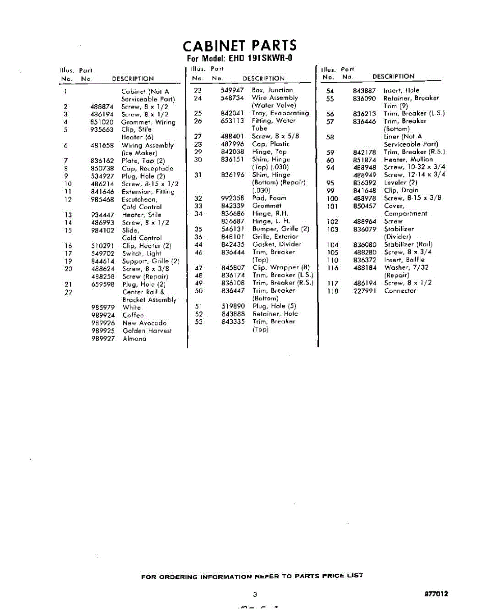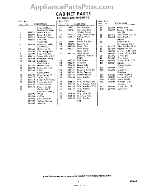 Parts for Whirlpool EHD191SKWR0: 03 - Section Parts