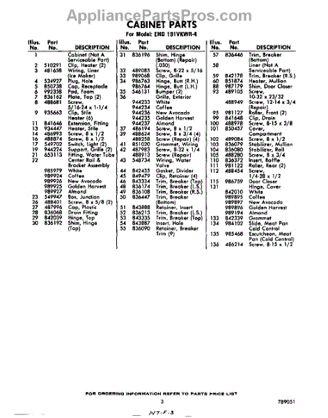 Parts for Whirlpool EHD191VKWR4: 03 - Section Parts
