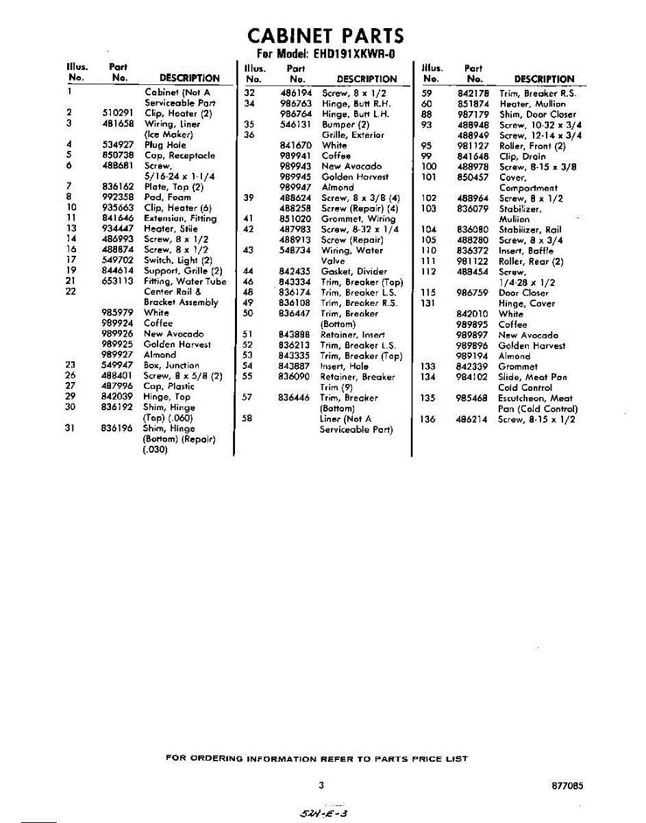 Parts for Whirlpool EHD191XKWR0: 03 - Section Parts