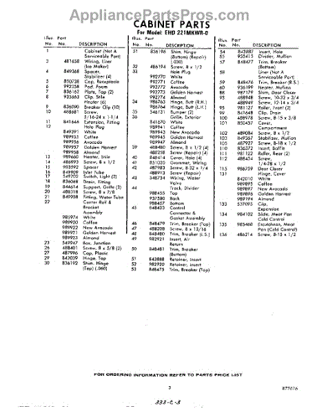 Parts for Whirlpool EHD221MKWR0: 03 - Section Parts