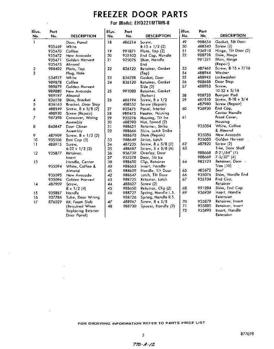 Parts for Whirlpool EHD221MTWR0: 03 - Section Parts