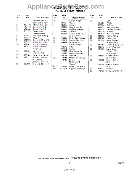 Parts for Whirlpool EHD251CMWR0: 03 - Section Parts