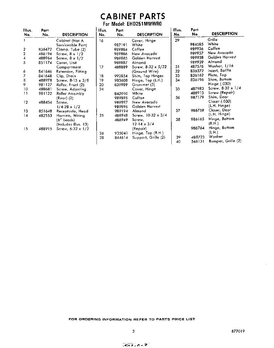 Parts for Whirlpool EHD251MMWR0: 03 - Section Parts